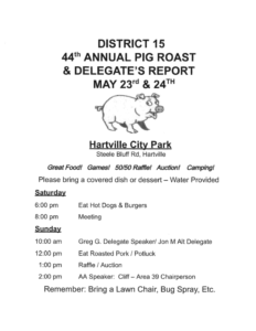 « All Events District 14 44th Annual Pig Roast & Delegate’s Report May 23 @ 6:00 pm - May 24 @ 2:00 pm « Springtime in the Ozarks Heart of the Ozarks Roundup » Download Flyer: District 14 44th Annual Pig Roast & Delegate’s Report Flyer Add to calendar Google Calendar iCalendar Outlook 365 Outlook Live Details Start: May 23 @ 6:00 pm End: May 24 @ 2:00 pm Venue Hartville City Park Steele Bluff Road Hartville, 65667 United States + Google Map